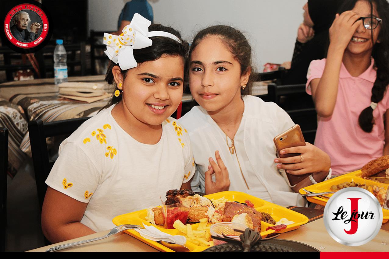 Réception des élèves de classe de cinquième (CM2) du groupe scolaire Albert Einstein Rouiba et Boumerdes le 24/05/2017, à un repas collectif en présence de leurs parents afin de donner plus de courage et de confiance aux petits qui passerons leur examen de passage au cycle secondaire le jour même.